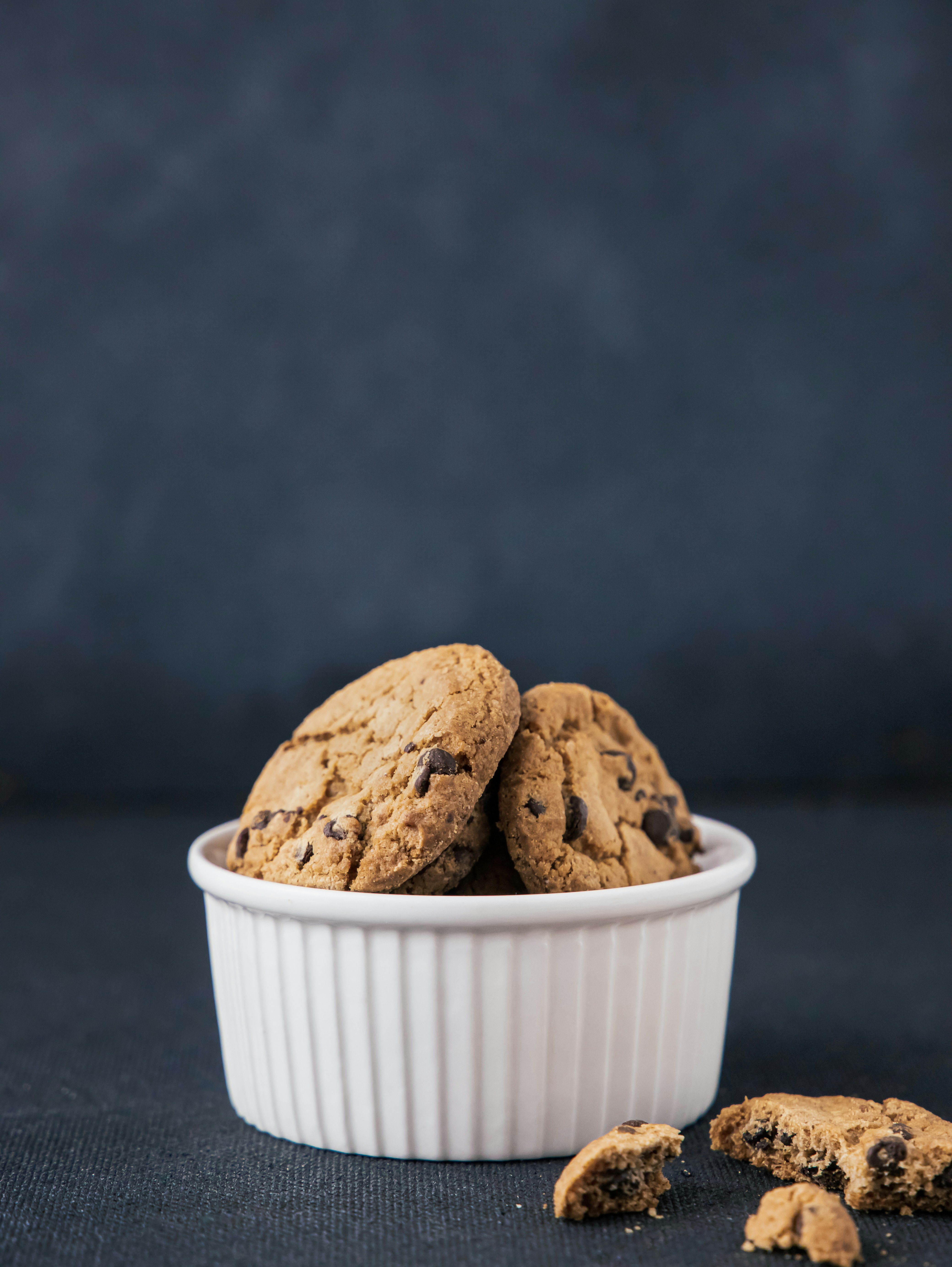 Dark cookie pieces create striking visual contrast against creamy white